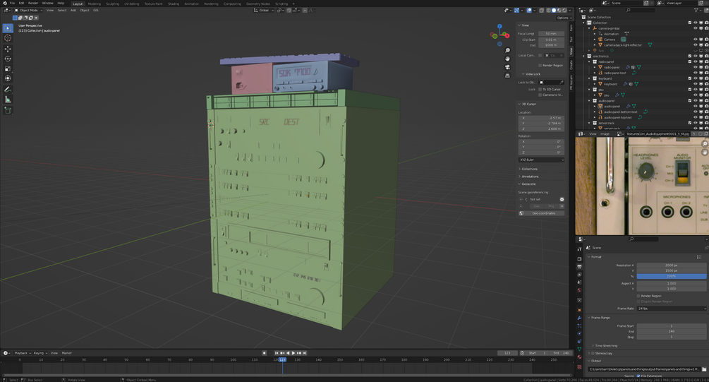 This is an asset pack that contains a power supply, radio, mechanical keyboard, 1U server rack, and a full audio equipment rack. Feel free to use it wherever you want, as you will receive the full .blend file with all of the shaders and mesh, as well as the compositing in case you want to go for a similar look!
